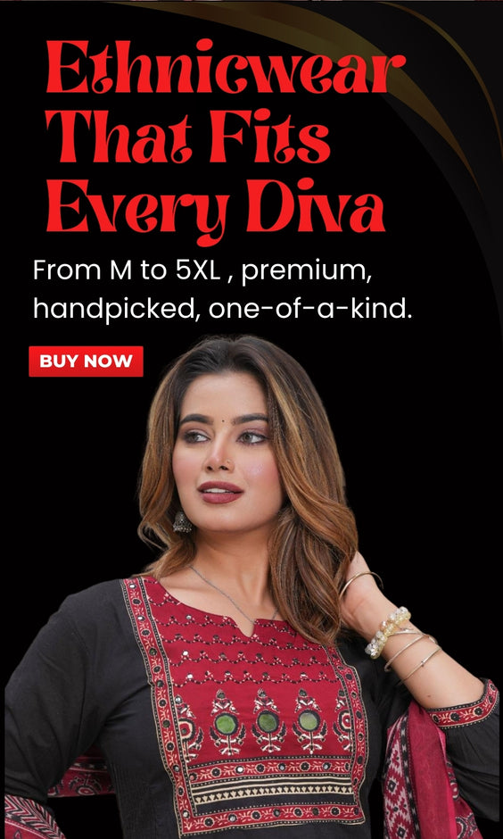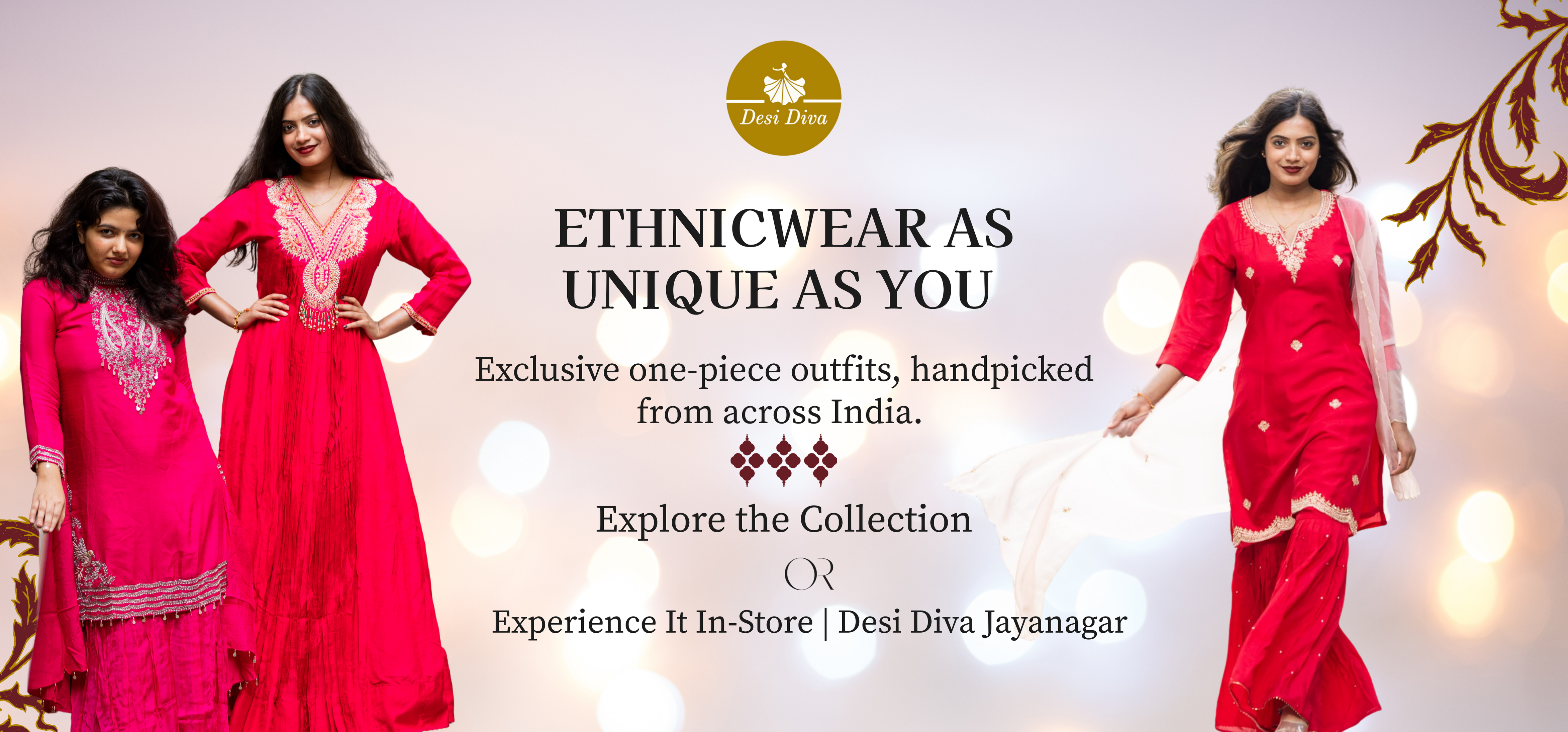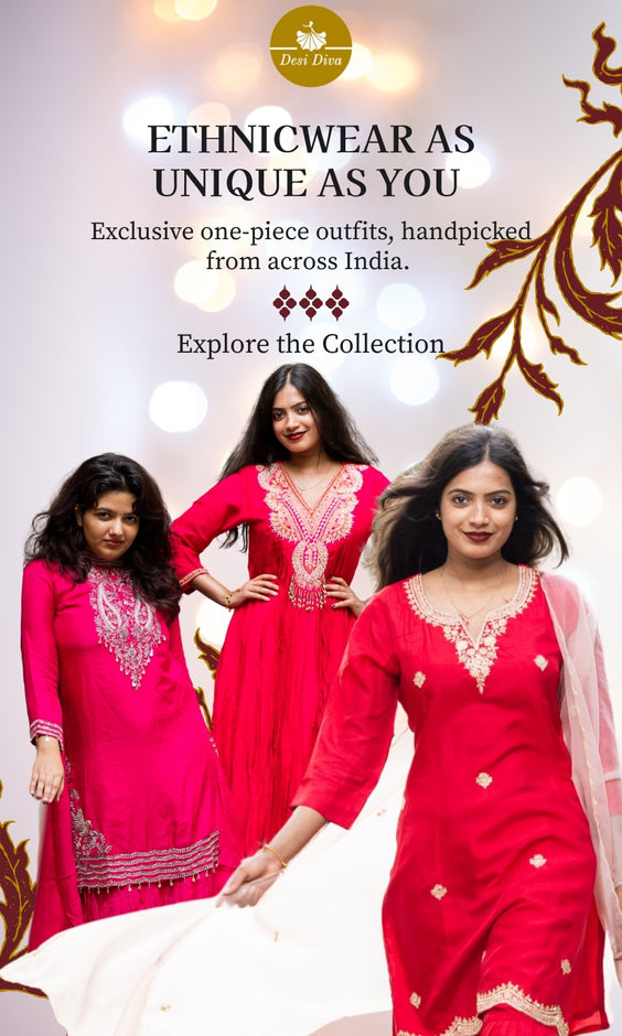 We believe every woman is a Diva and deserves outfits as unique as she is. That’s why we create a shopping experience where you’ll never have to worry about twinning with someone else.Our collection of exclusive kurtis, suits, gowns, and co-ords is handpicked from Jaipur, Kolkata & beyond, crafted to give you premium quality, trend-right designs, and inclusive sizes from M–7XL.Born from our founder kusum’s own struggle to find stylish ethnic wear in her size, Desi Diva is here to make sure no woman ever settles for less.One design. One piece. One diva. Yours to own.