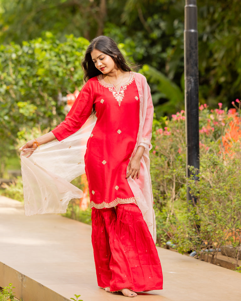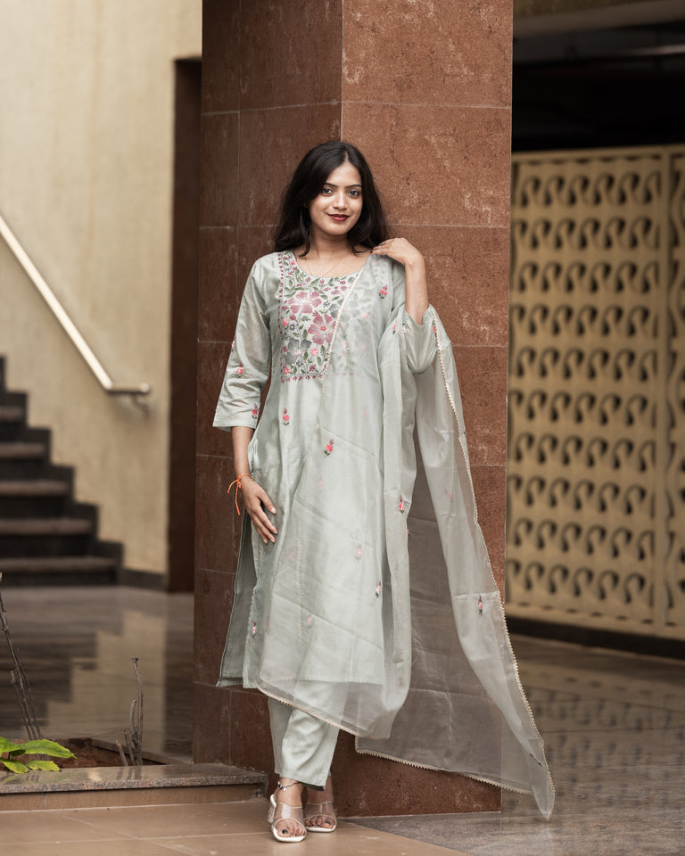 Full Set with Hand Embroidery Straight fit Baby Pink